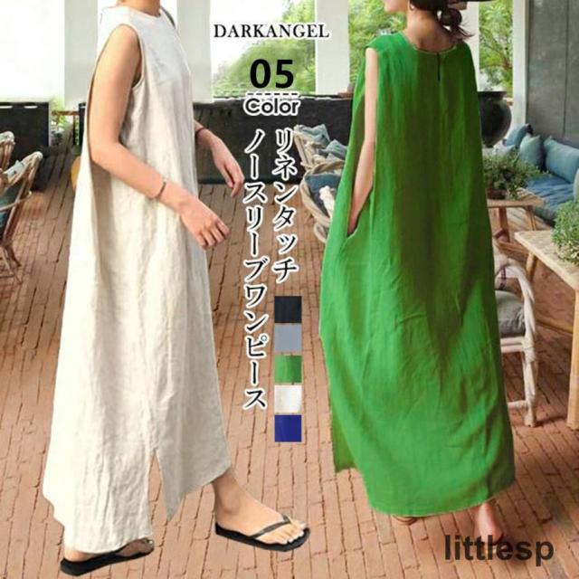 ノースリーブ ワンピース レディース リネンワンピース 夏 ロングワンピ マキシ丈 Aライン 体型カバー タンクワンピ ゆったり レトロ 無地