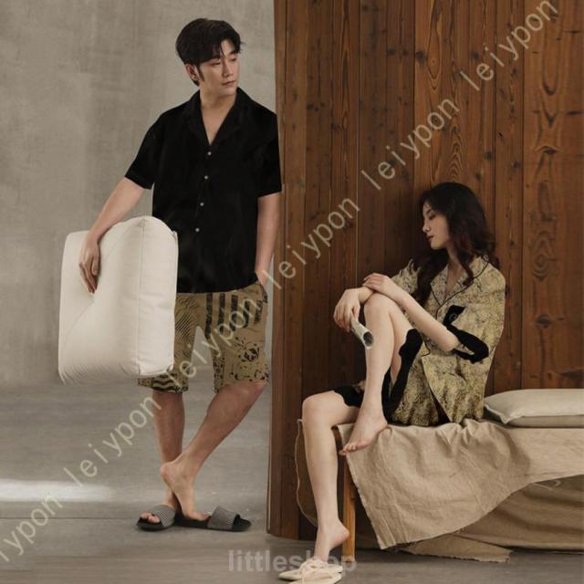 ペアパジャマ レディース メンズ ルームウェア 部屋着 上下 セット シルク サテン ペア パジャマ お揃い 夫婦 春 夏 パジャマ ペア カップル パジャマ 前開き