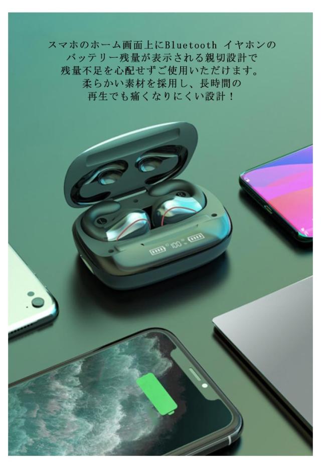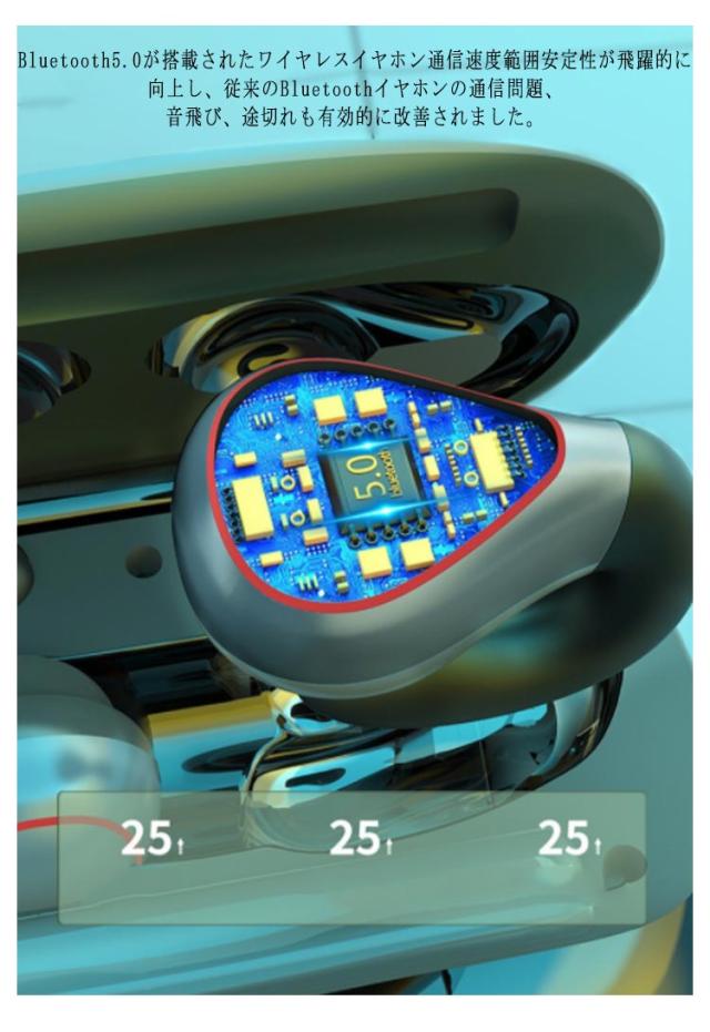| サイズについての説明 | サイズ:Bluetoothバージョン:5.0 防水:IPX8 通話/再生時間:3-8時間 Bluetooth通信距離:約10メートル 待機時間:180時間 イヤホン充電時間:約0.5時間 充電ケース充電時間:約1時間 |