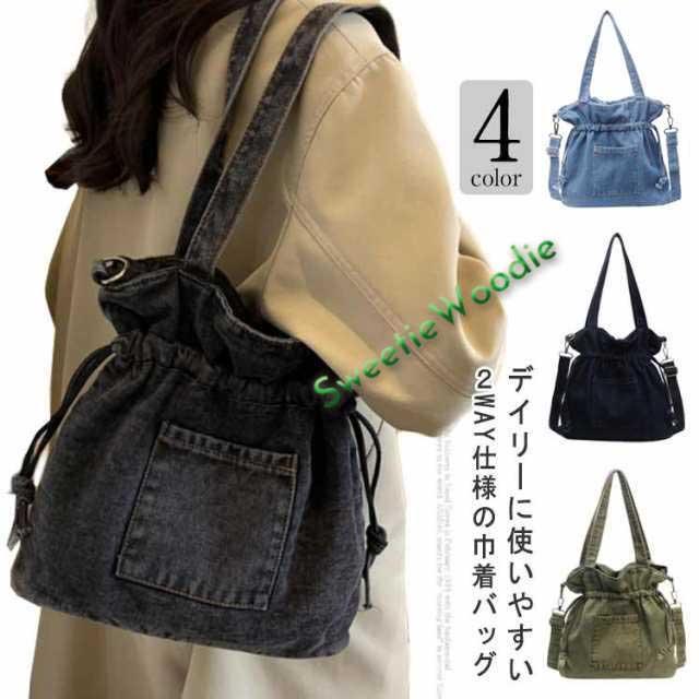 デニム 巾着バッグ ショルダー レディース 巾着 バッグ トートバッグ ショルダーバッグ キャンバス 軽量 大容量 A4 大きめ デニムバッグ 巾着バッグ トート 斜めかけ 肩掛け 鞄 カバン デニムトート 大人 カジュアル おしゃれ かわいい 【送料無料】