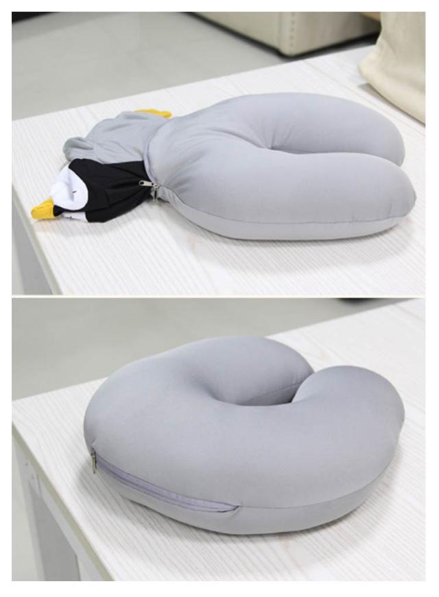 | クッションがネックピローに変身! 触り心地がモチモチだから、首に優しくフィット! 小さなお子様用としても使用ができます。 色んなシーンで活躍するのがポイント! ファスナーを開いて、中身をひっぱり出します。 | |
