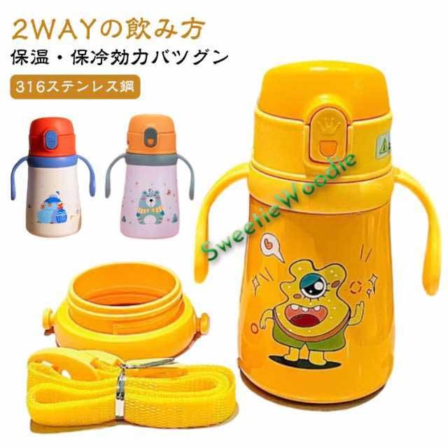 ハンドル付き キッズ ショルダーストラップ付き 子ども 水筒 女の子 子供用 肩掛け ストロー 360ml 2way 魔法瓶 保温 水筒 保冷 男の子 ステンレスボトル ワンタッチ キッズボトル キッズ用 水筒 ボトル 直飲み かわいい 大容量 軽量 ステンレス 肩紐 通学