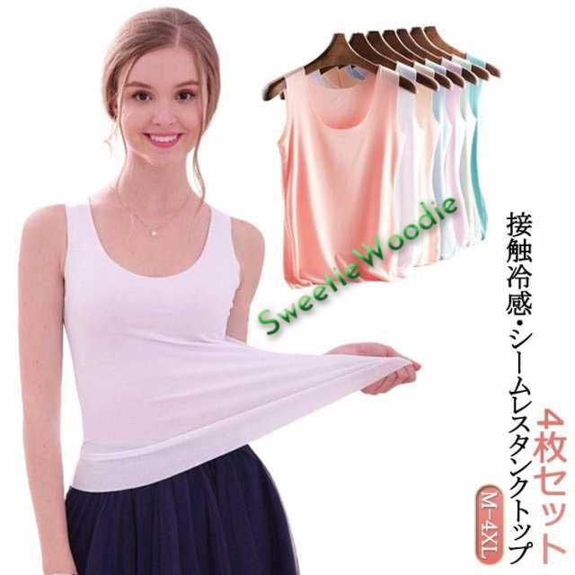 冷感 インナー 4点セット 下着 大きいサイズ レイヤード Uネック 冷感 接触冷感 涼感 インナー インナー 下着 ひんやり 肌着 4点セット タンクトップ キャミソール M L XL 2XL 3XL 4XL