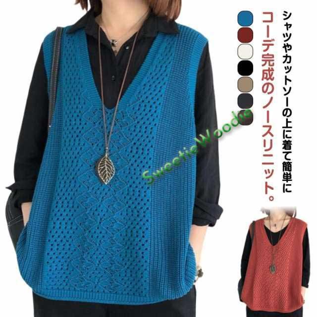 | シャツやカットソーの上に着て簡単にコーデ完成のノースリニット。 レトロな編み模様がおしゃれアクセント。 透かし編みの夏らしいデザインで季節感を演出♪ ゆったりとしたサイド感はレイヤードファッションに最適! 深めのVネックがキレイなデコルテ部分を強調、小顔効果もバッチリ! | |