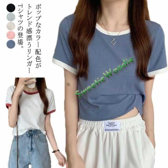 半袖 Tシャツ リンガーTシャツ レディース カットソー トップス バイカラー 配色 ショート丈 コンパクト クルーネック 丸首 おしゃれ 女子 かわいい カジュアル 夏 無地 全5色