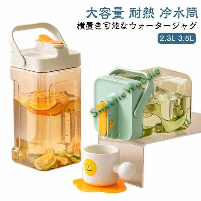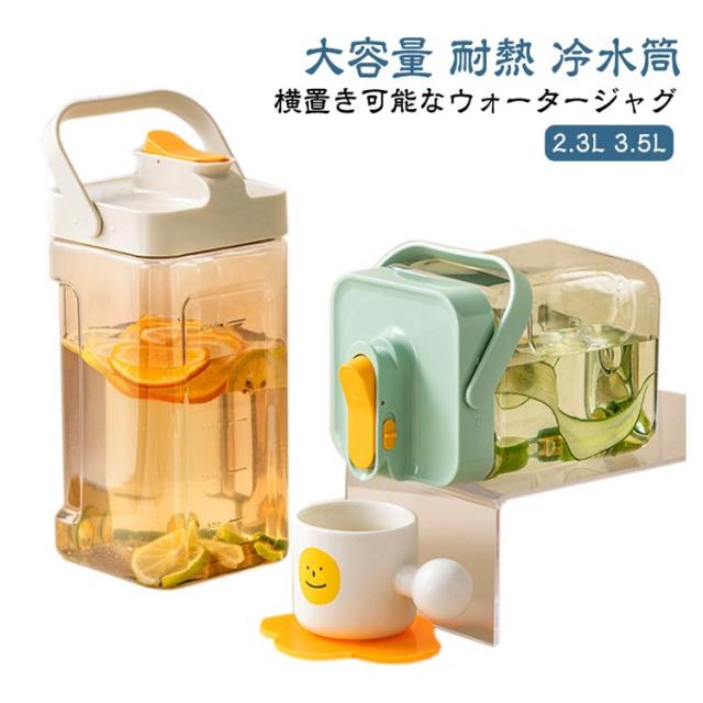 麦茶ポット お茶ポット 冷水筒 横置き 2.3L 3.5L 大容量 耐熱 ピッチャー ロック付き 洗いやすい 広口 プラスチック ハンドル付き 持ち運び おしゃれ 冷蔵庫ポット 水出し 麦茶入れ ジャグ ウォータージャグ