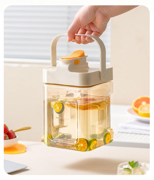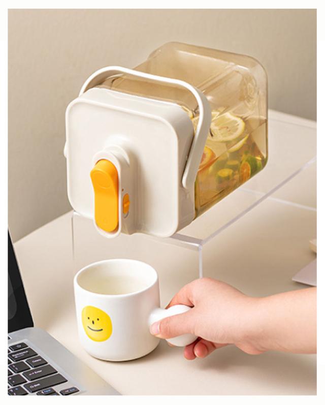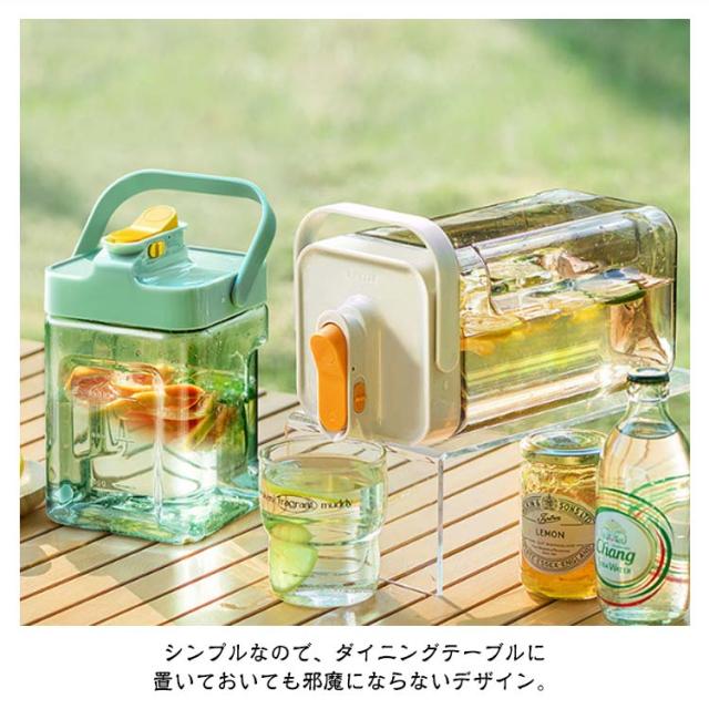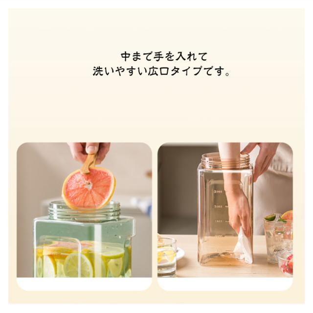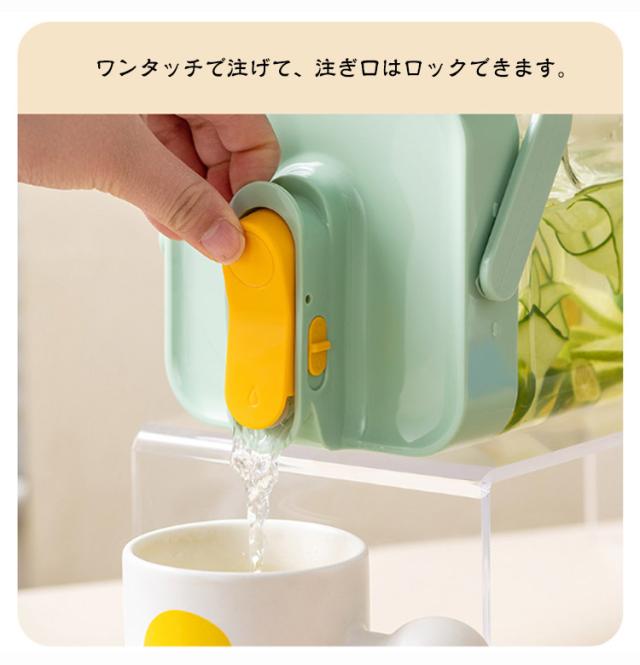 | ・横置き可能なウォータージャグ ・ワンタッチで注げて、注ぎ口はロックできます。 ・パッキン付なので、倒して置いても漏れにくい構造です。 ・耐熱性があり熱湯もOK ・横置きもできるから庫内での置き場所に困りません ・中まで手を入れて洗いやすい広口タイプです。 ・シンプルなので、ダイニングテーブルに置いておいても邪魔にならないデザイン。 | |