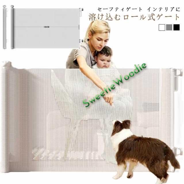 ペットゲート ベビーゲート 階段上 階段 ロール 安全ゲート ワイド 幅広 ロールタイプ セーフティゲート 伸縮 巻き取り式 脱出防止対策 140cm 180cm 段差なし ロック機能 ペットフェンス ベビーフェンス 犬 台所 廊下 玄関 キッチン メッシュ 素材 取り付け簡単