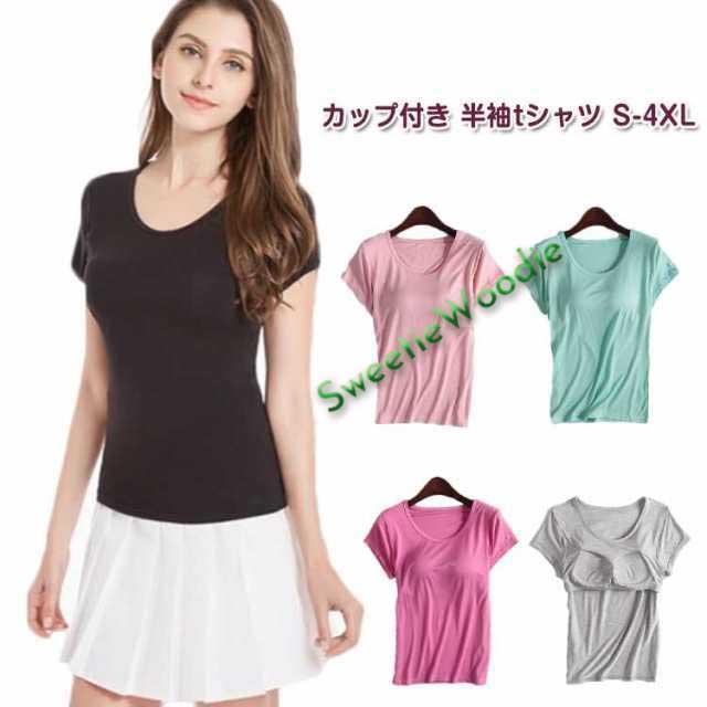 | カップ付き 半袖tシャツ S-4XL バストをホールドしてくれるブラカップの付いた半袖Tシャツは、着心地をとことん追求! ストレスのない優秀トップスです。 着心地が良い!肌触りもサラサラカップ付きTシャツ♪ | |
