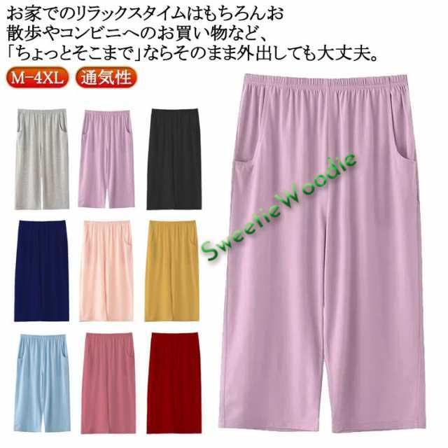 綿 コットン ワイドパンツ ステテコ 7分丈 イージーパンツ ハーフパンツ 可愛い レディース ルームパンツ 涼しい 春夏 ひざ下 ルームウェア 通気性 無地 ボトムス 吸水性 ポケット付 ゆったり ワイドパンツ 大きいサイズ