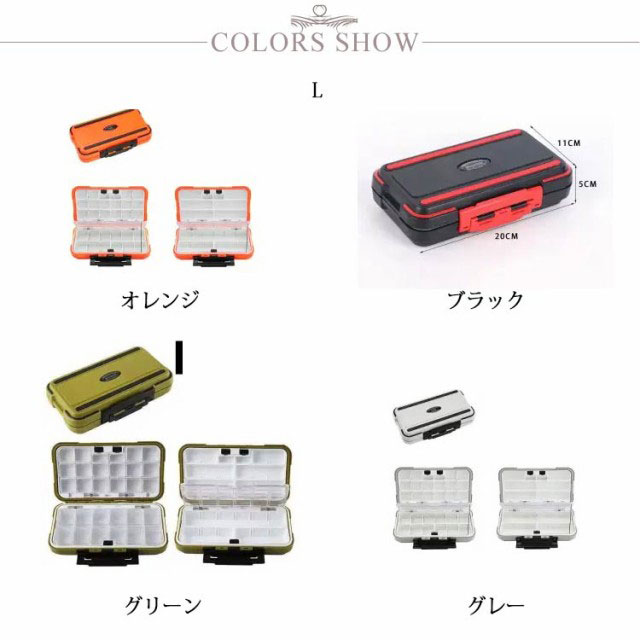 | 釣り具を上手に収納可能なタックルボックスが登場! シンカー・フック・フライなど様々なアイテムを一気に収納できます。 各収納スペースは透明の窓を付けているので見やすく、釣りの最中にケースを落としても中のアイテムが散乱する事がありません。 開閉分部には防水機能のゴムパッキンが施されています。 使用後はそのまま丸洗いが可能なので清潔に保つこともできます。 海釣り用ルアーや野池用ルアーまで様々なサイズのルアー、釣り具をカスタマイズできる様に仕切板も付属しております。 選べる3サイズ、ニーズに合わせてお選びいただけるのもうれしい! | |
