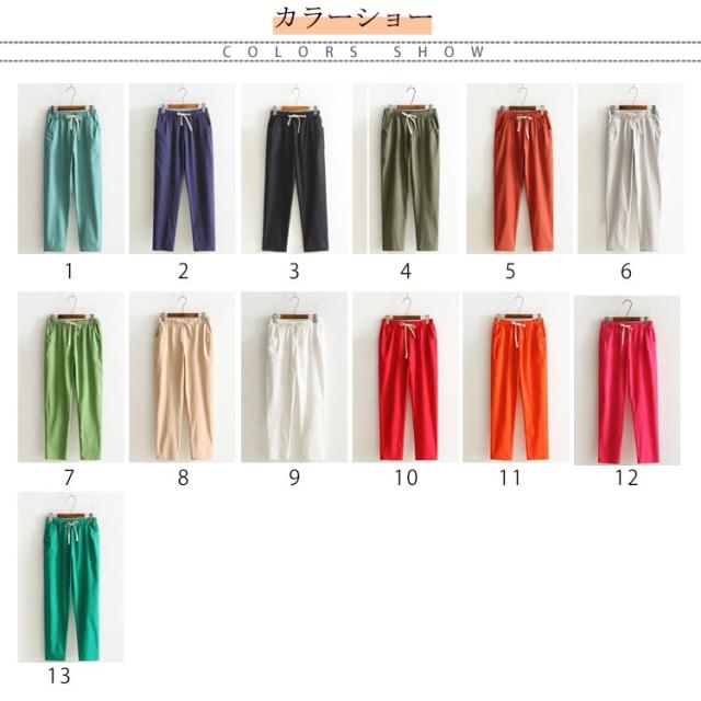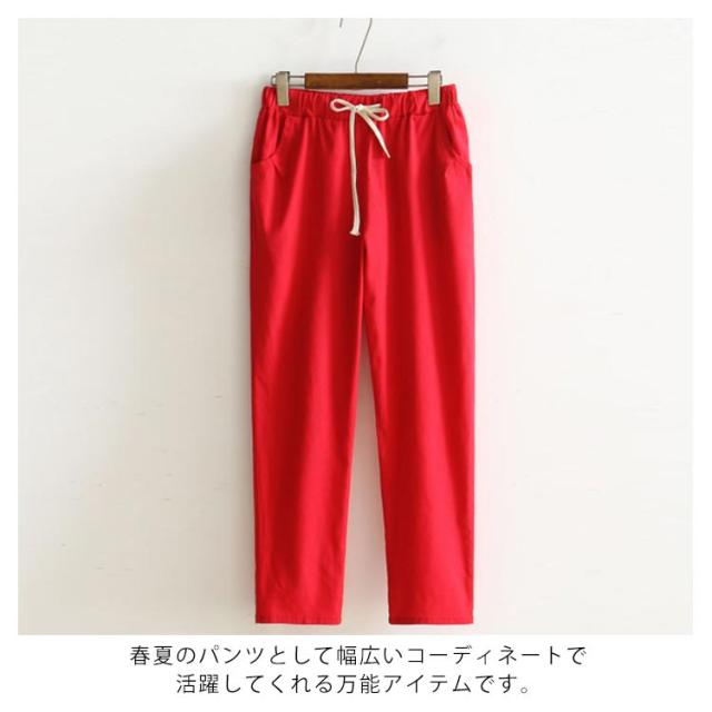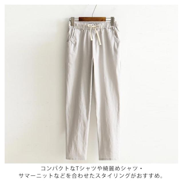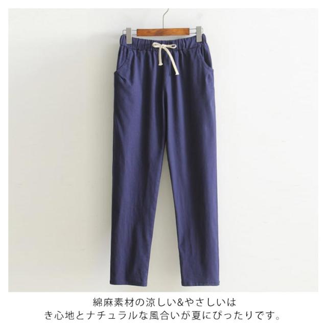 リネンパンツ レディース 九分丈 テーパードパンツ 綿麻パンツ リネン混 麻混 パンツ ストレートパンツ ロングパンツ 無地 コットンリネン ボトムス リラックスパンツ 涼しい ウエストゴム 大きいサイズ ゆったり 体型カバー おしゃれ カジュアル 可愛い シンプル 送料無料