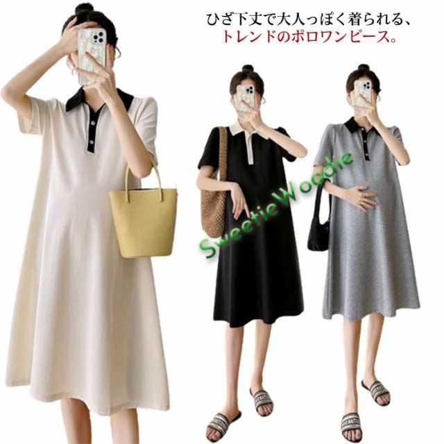 マタニティ ワンピース 半袖 授乳服 春 夏 妊婦服 ポロ ワンピース カジュアル マタニティウェア Tシャツ ワンピ ミモレ丈 ひざ下 ポロシャツ ロングワンピース 産前 産後 大きいサイズ レディース 前開き 送料無料