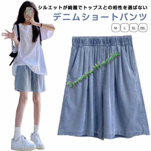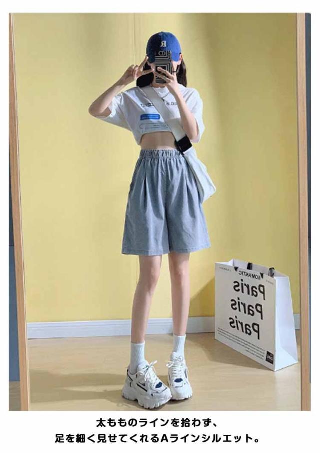 ハーフパンツ ショートパンツ レディース デニム 送料無料 送料無料 夏 短パン ゆったり ストレート ハイウエスト ワイドパンツ ウエストゴム 薄手 涼しい 膝丈 大人可愛い ママ 通勤通学 カジュアル おしゃれ