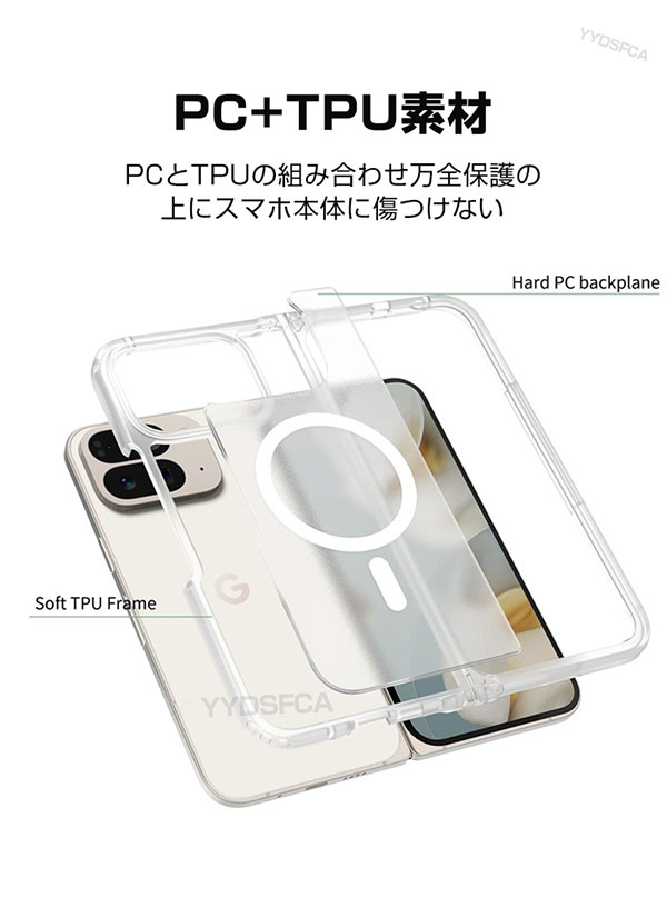 グーグル Google Pixel 10 Pro Fold ケース 折りたたみ式 スマートフォンケース マグネット TPU+PC素材 マットタイプ 半透明の スマホ保護ケース 耐衝撃カバー ピクセル10 プロ フォールド 便利 指紋防止 汚れ、傷つき防止 背面カバー 人気 おすすめ おしゃれ