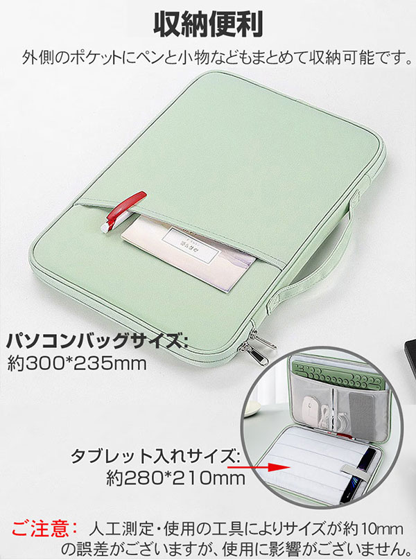 | 特徴 | 【ポリエステル製】ポリエステル素材を使用しており、摩耗に強くほか見た目もカッコイイです。 【保護力】外部の生地は高品質のポリエステル繊維を利用し、防水、防塵、防傷、お客様のパソコンをよく保護できます,内部は衝撃防止の素材を採用、タブレットを衝撃から保護します。 【耐衝撃】衝撃吸収パッドがあり、絹のような手触りのふわふわで、ラップトップをすり傷、衝撃からしっかりと保護します。 【 男女兼用 ・高級感溢れ】シンプルで高級感溢れるデザイン、きれいなカラーは老若男女問わず、通勤・旅行・日常生活の様々なシーンに対応します。お友達や家族にもギフトとしておすすめます。 【商品品質】 商品の管理・品質については万全を期しておりますが、万一ご注文と異なる商品・不良品が届いた場合は 商品到着後7日以内にお問い合わせフォームにてお名前・受注番号などをご記入の上、ご連絡頂いた場合のみ対応となります。 | |||||