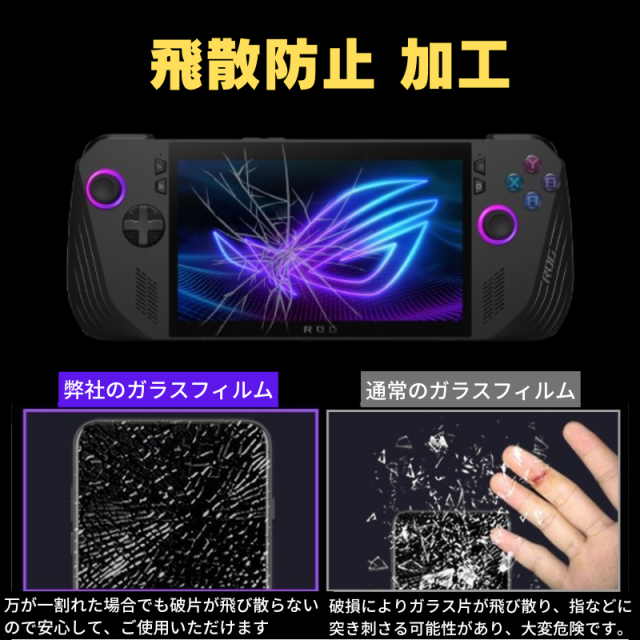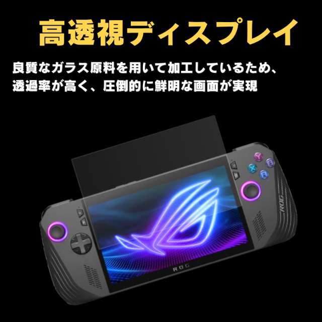 ASUS ROG Ally X ( 2024 ) / ASUS ROG Ally ( 2023 ) ガラスフィルム 強化ガラス 保護フィルム 光沢 全面保護 高透過 硬度9H 飛散防止 指紋防止 RC72LA RC71L エイスース