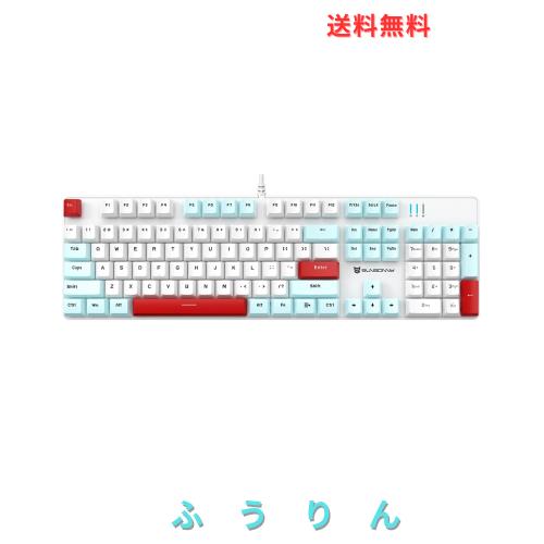 Merdia メカニカル式ゲーミングキーボード 全104キーボード 有線 USB有線キーボード LEDバックライト付き (青軸-白青赤)