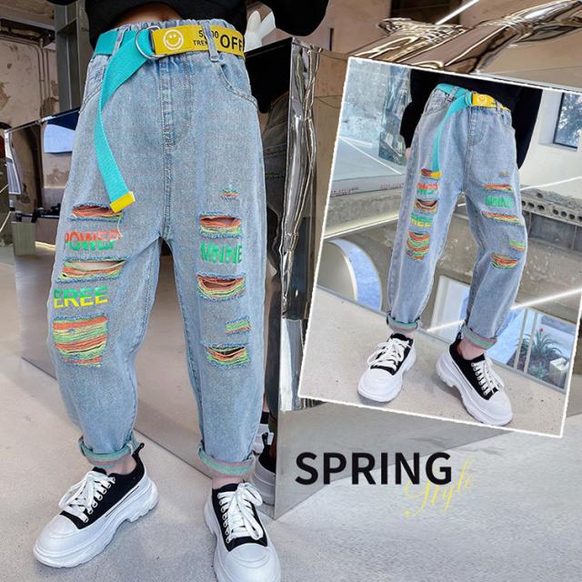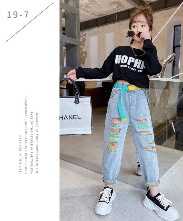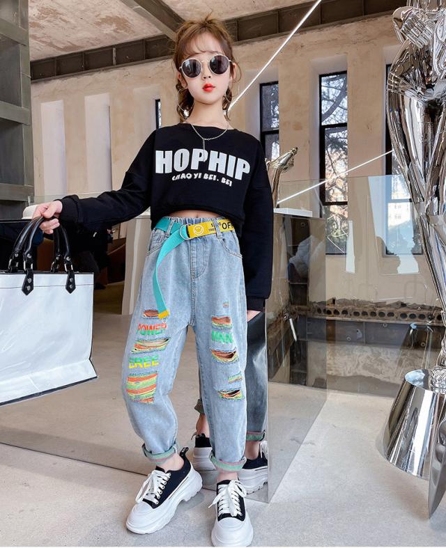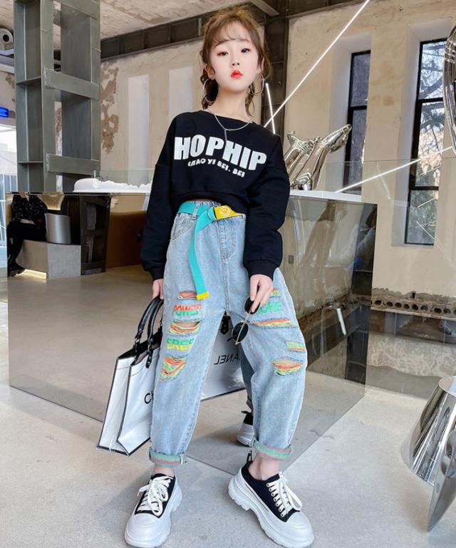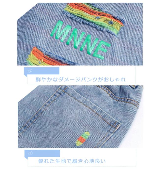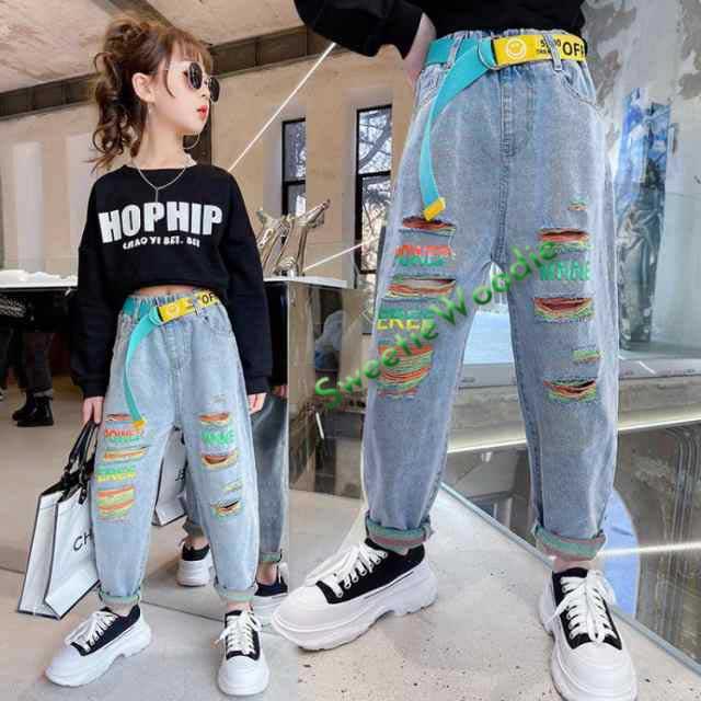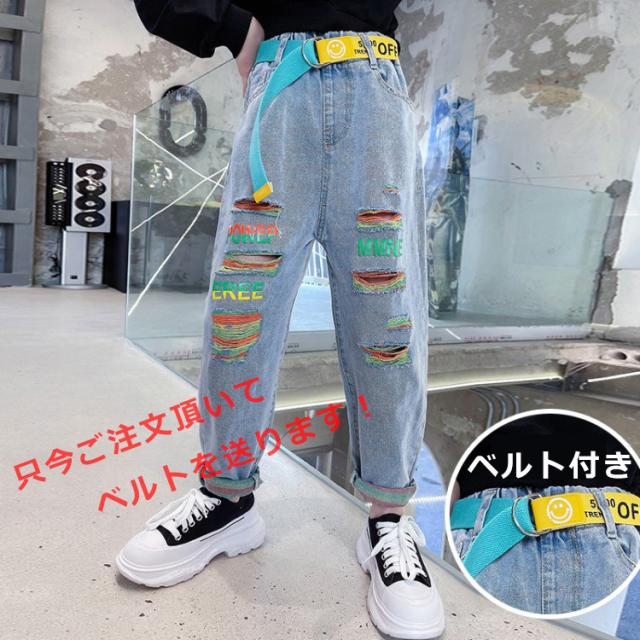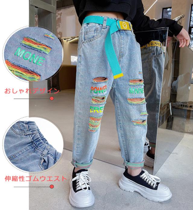 デニムパンツ キッズ ダメージパンツ 韓国 ダンス衣装 ヒップホップ セットアップ 子供服 デニム ズボン ショート丈 かっこいい 長ズボン 単品販売