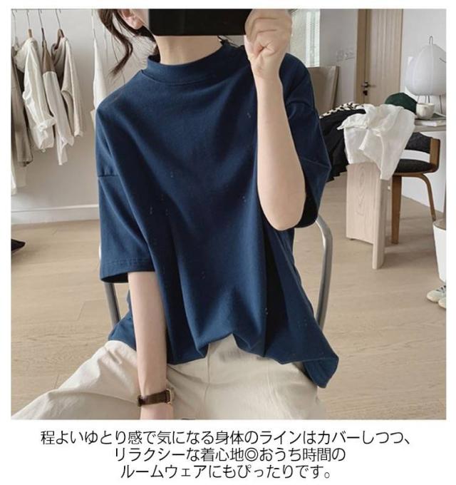 カットソー 半袖tシャツ レディース tシャツ 5分袖 ゆったり タートルネック 春夏 無地Tシャツ tシャツ トップス ハイネック 女性 無地Tシャツ 半袖 シンプル 着?せ 大きいサイズ 無地 シンプル 通勤 薄手