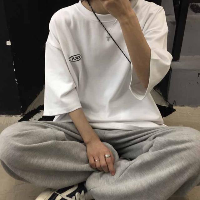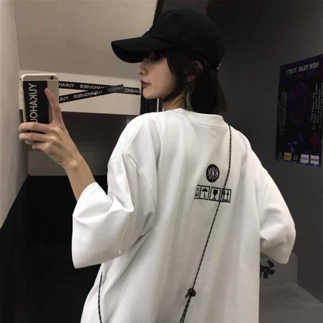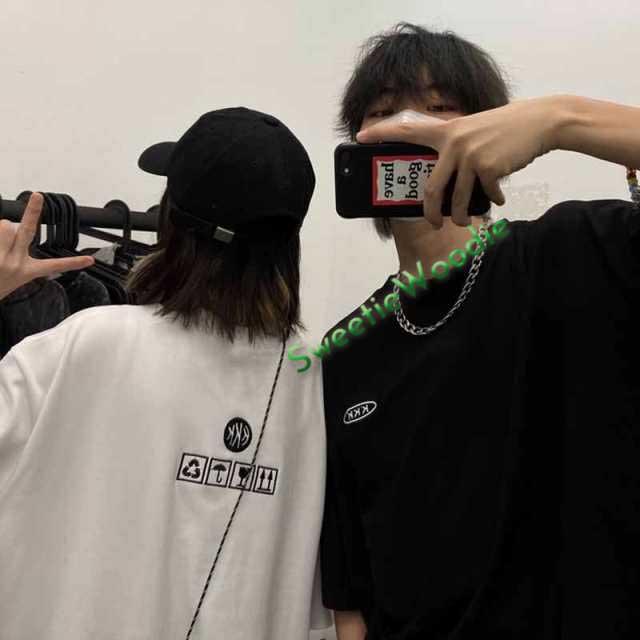 原宿風 カップル服Tシャツ レディース おしゃれ 半袖 ロング丈トップス 韓国ファッション ヒップホップ ダンス衣装 ストリート系 BF風 カジュアル 大きいサイズ
