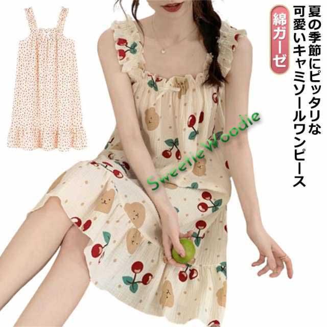 ワンピース レディース 姫系 綿ガーゼ ノースリーブ ルームウェア ナイトウェア インナー パジャマ 寝巻き 可愛い 高校生 花柄 キャミソール 女の子 ネグリジェ 大人 学生 寝間着 カジュアル 春 夏