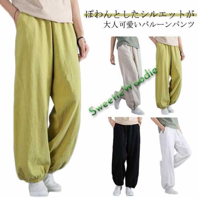 綿麻 リラックスパンツ バルーンパンツ サルエルパンツ ロングパンツ レディース 夏 ゆったり イージーパンツ イージーパンツ 部屋着 通気性 ズボン 涼しい ウエストゴム ポケット付き 無地 大きいサイズ