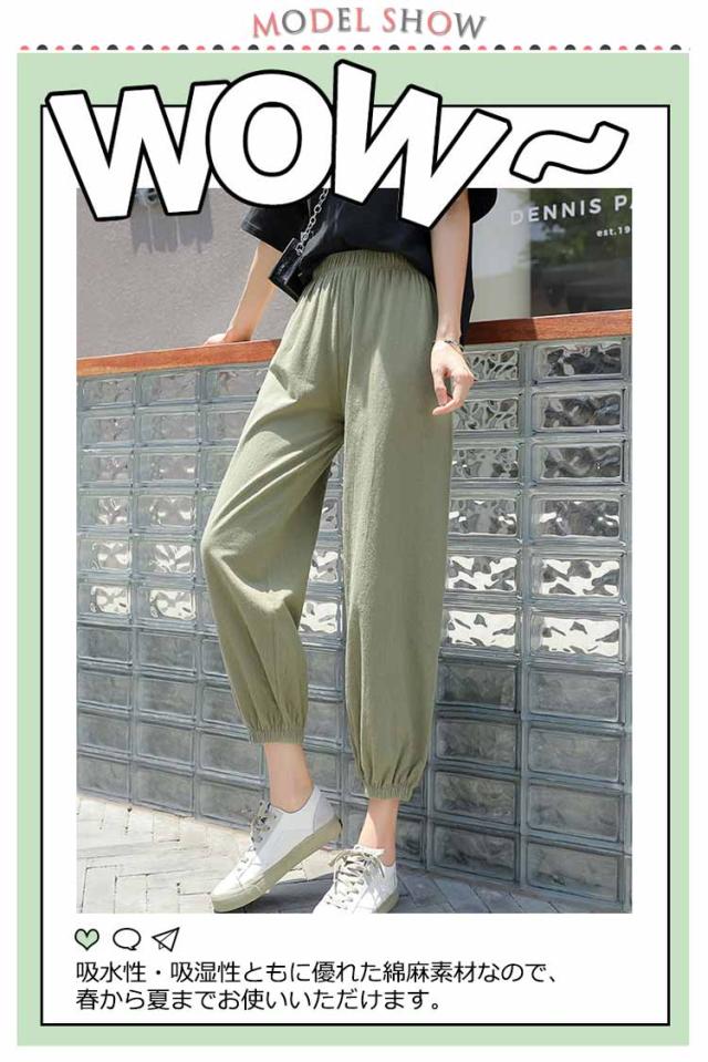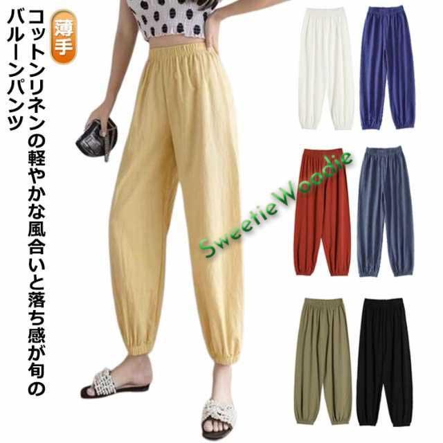 パンツ 綿麻 綿麻 サルエルパンツ ウエストゴム カジュアル 九分丈パンツ サルエル ワイドパンツ リネンパンツ バルーンパンツ 綿麻パンツ 春 パンツ 夏 秋 ボトムス 大きいサイズ ナチュラル 無地 薄手