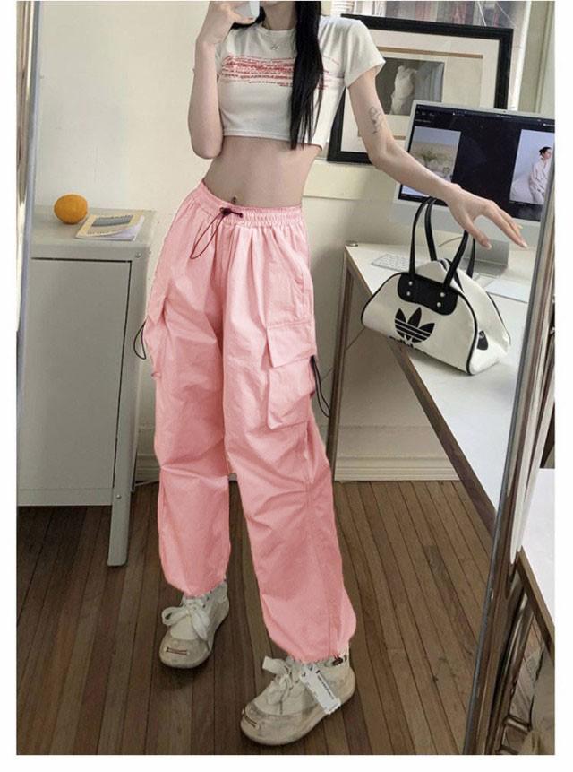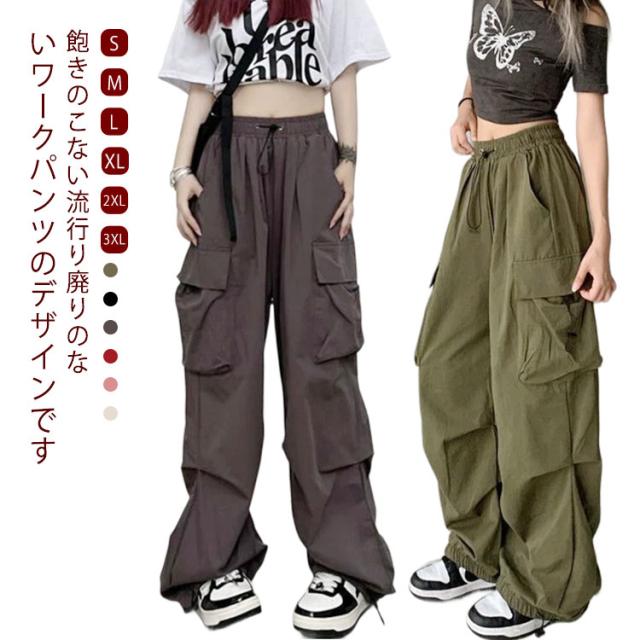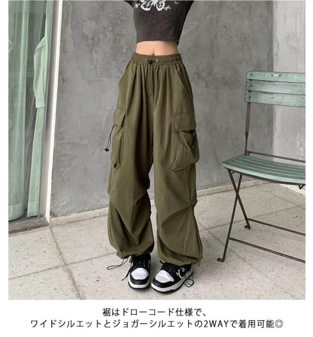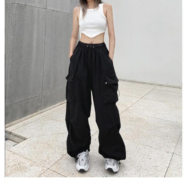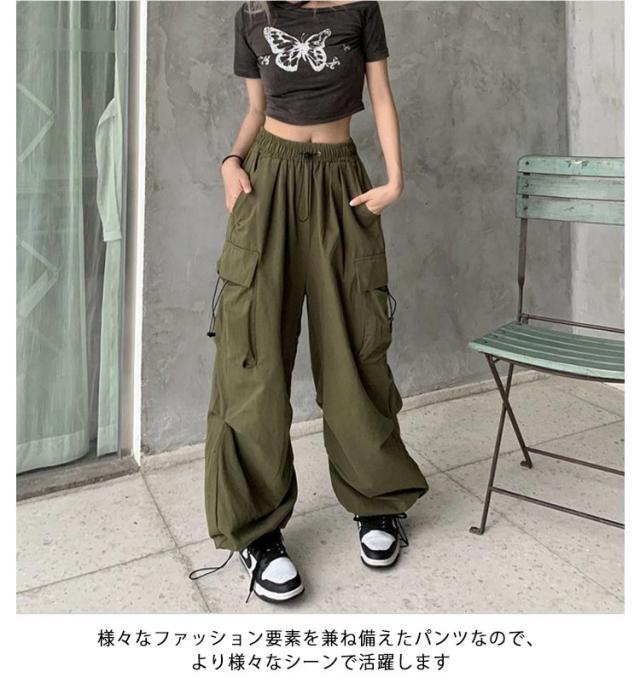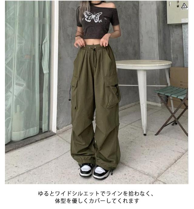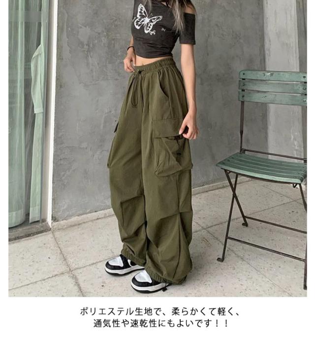 カーゴパンツ 韓国ファッション ボトムス 長ズボン レディース ダンス セクシー カーゴパンツ ミリタリーパンツ 作業着 カジュアル ジェンダーレス ワイドシルエット 動きやすい ウエストゴム 多ポケット付き ゆったり お洒落