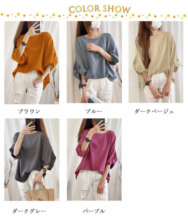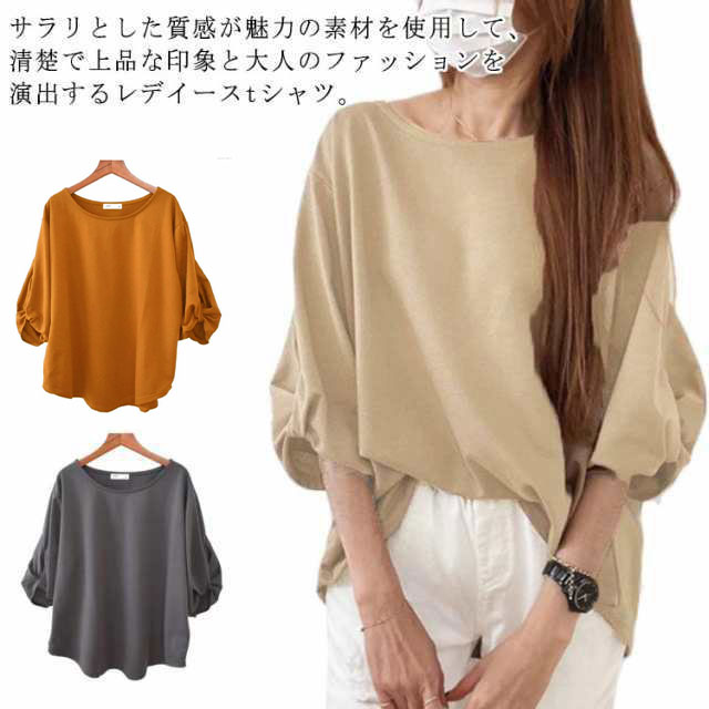 トップス 七分袖 プルオーバー tシャツ ブラウス レディース 無地 ブラウス Tシャツ ブラウス フレア おしゃれ ゆったり 夏 体型カバー 可愛い カジュアル