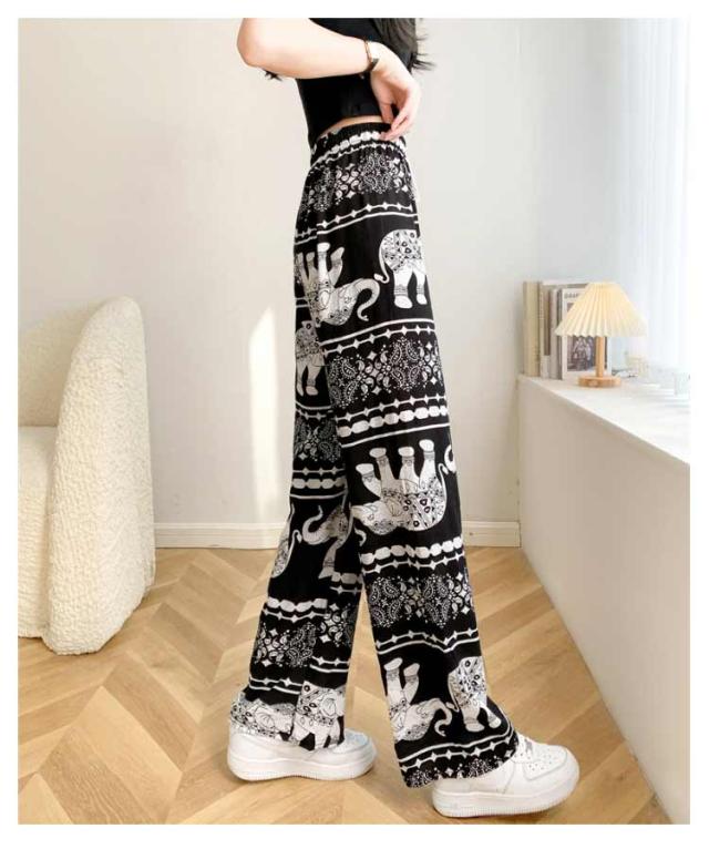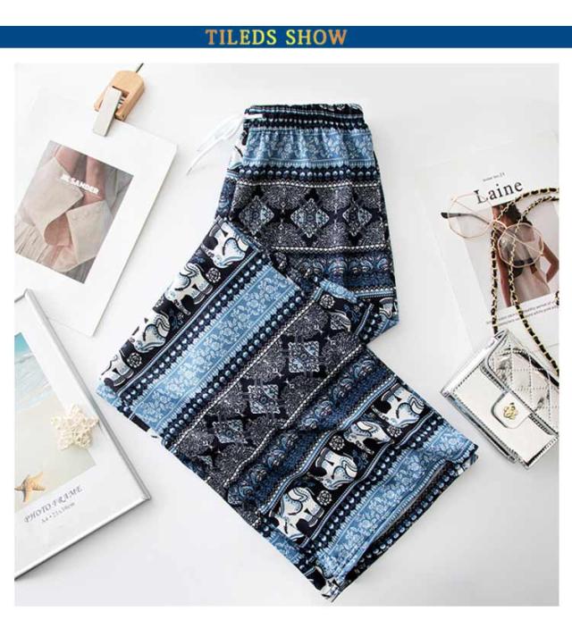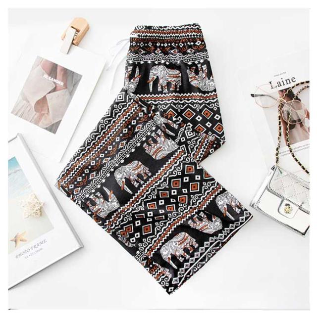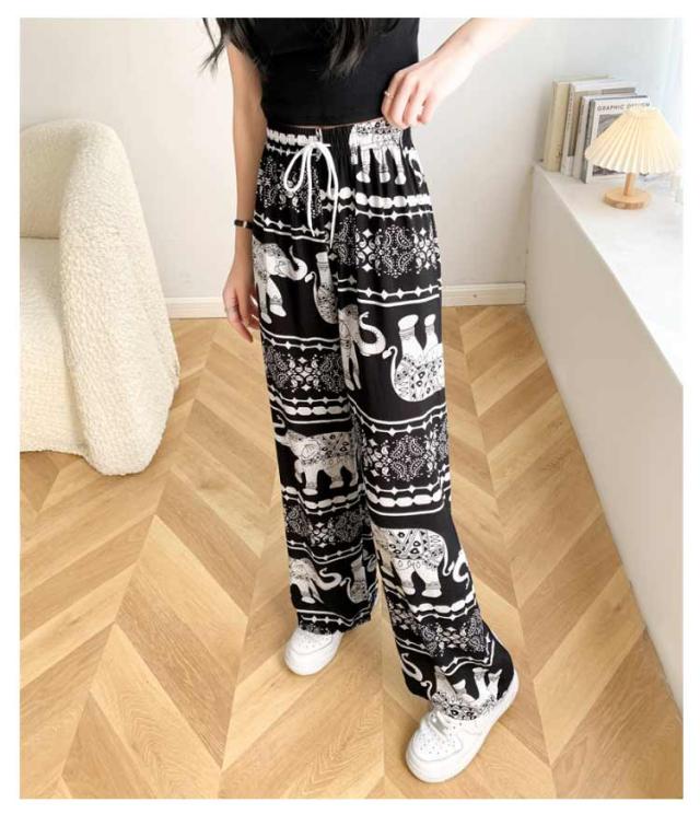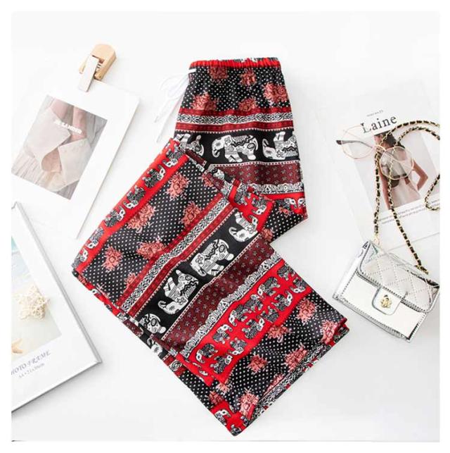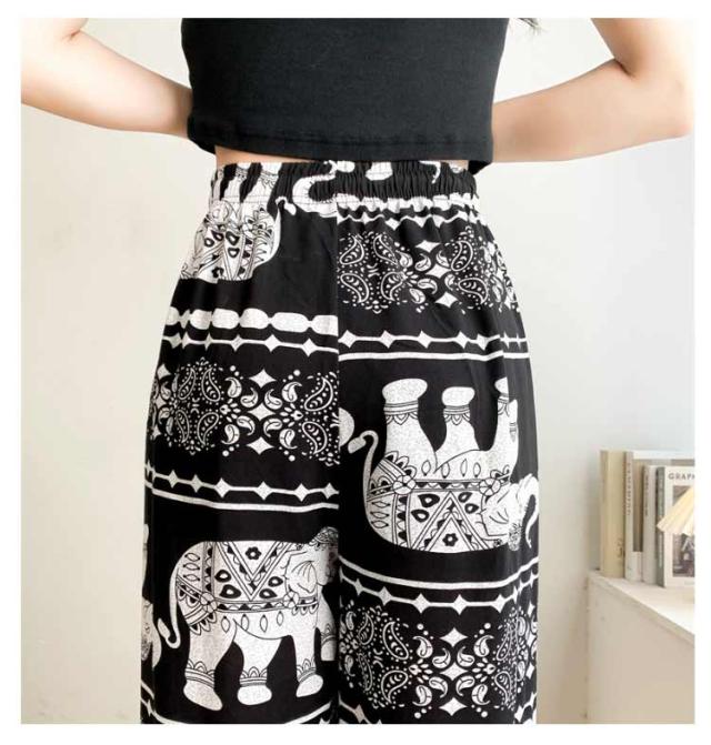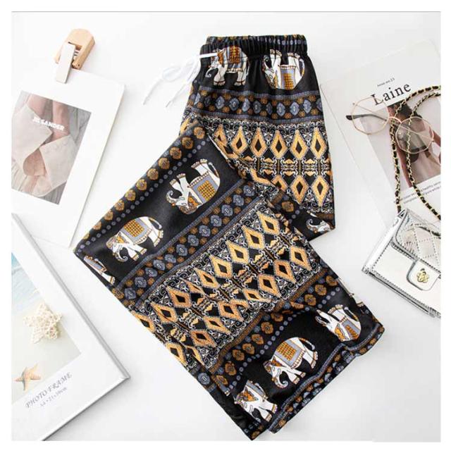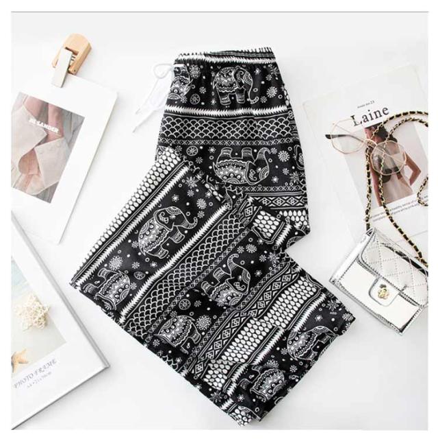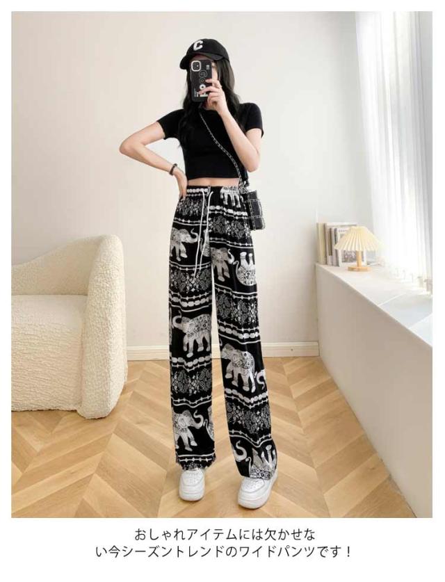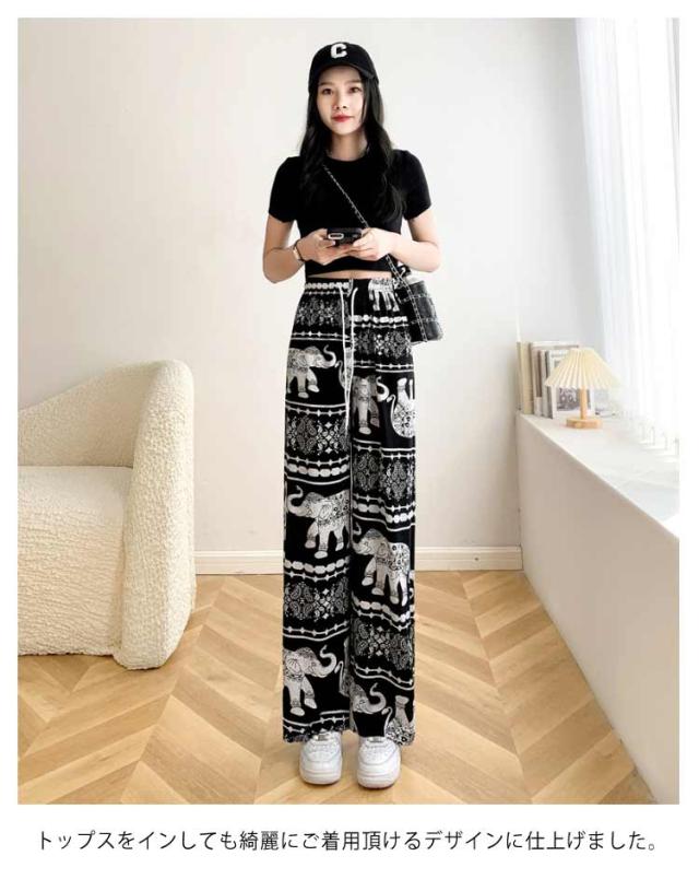 【2枚セット】接触冷感 パンツ ゆったり エスニック 部屋着 タイパンツ 象柄 ゾウ 【2枚セット】接触冷感 ルームウェア 冷感 ワイドパンツ 涼感 夏 レディース 薄手 落ち感 ロングパンツ 涼しい 通気性 体型カバー 柄パンツ ヨガパンツ ボヘミアン風 旅行 ハイウエスト