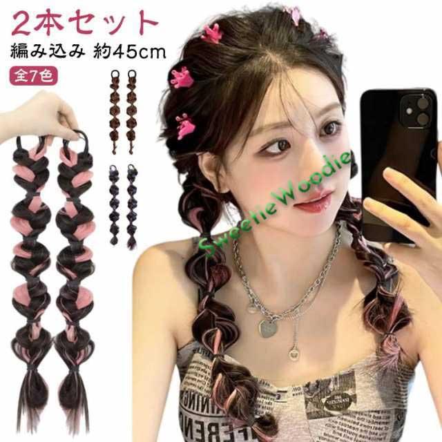 ヘアエクステ キッズ ダンス 送料無料 三つ編み エクステ 送料無料 編み込み 娘 簡単 お出かけ カラーエクステ レディース ヘアゴム ポイントウィッグ エクステンション 便利 大人 付け毛 イベント 2本セット ツインテール 全7色