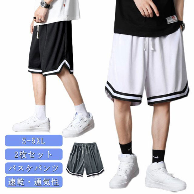 バスパン 薄手 【2枚セット】バスケパンツ バスケットボールパンツ 下 夏 メンズ チームウェア ハーフパンツ ジャージ ジュニア 大人 バスケットパンツ スポーツ ランニング ゴルフ ダンス トレーニング 速乾 大きいサイズ 運動会 体育祭 通気性