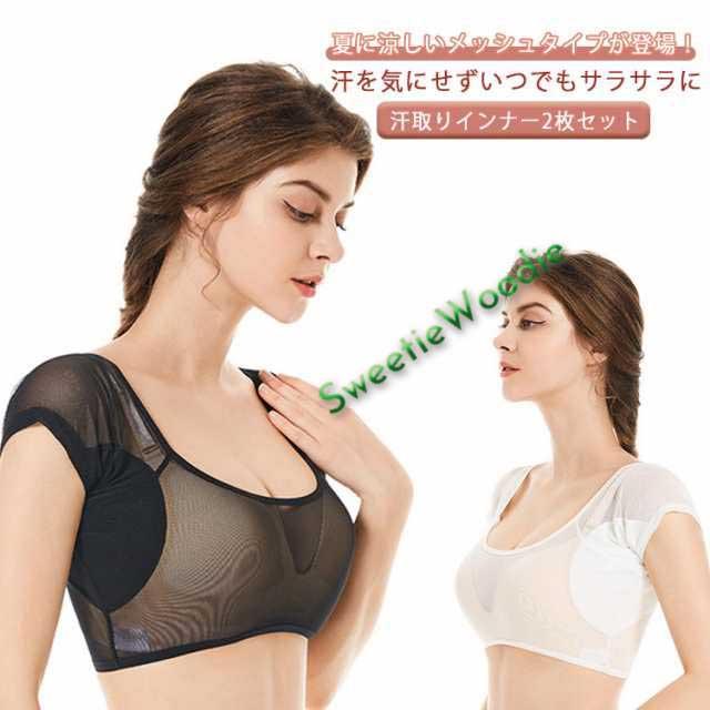 グッズ 脇汗 脇汗 ゴルフ 【2枚セット】メッシュタイプ 脇汗インナー 半袖 汗染み防止 【2枚セット】メッシュタイプ 汗取りインナー 背中 汗とりインナー 汗取りパッド付きインナー 脇汗パッド 吸汗速乾 夏 汗取りパッド付き レディース スポーツ 送料無料 ホワイト ブラック