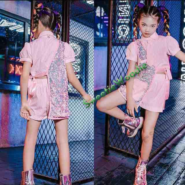 キッズ ダンス衣装 ヒップホップ HIPHOP 子供 女の子 ダンス ピンク 半袖 ショートパンツ ステージ衣装 練習着 演出服 120-160cm