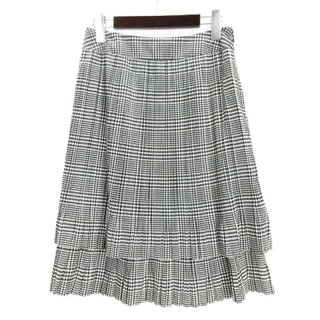 【中古】ラピーヌ ブランシュ LAPINE BLANCHE スカート チェック プリーツ 9 ブラック ホワイト 250724E レディース