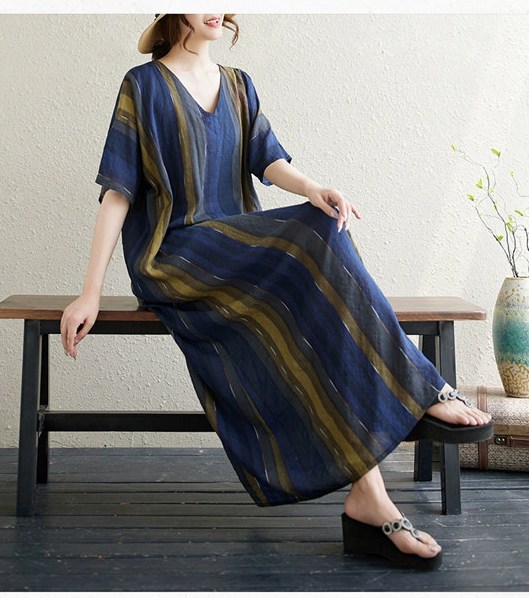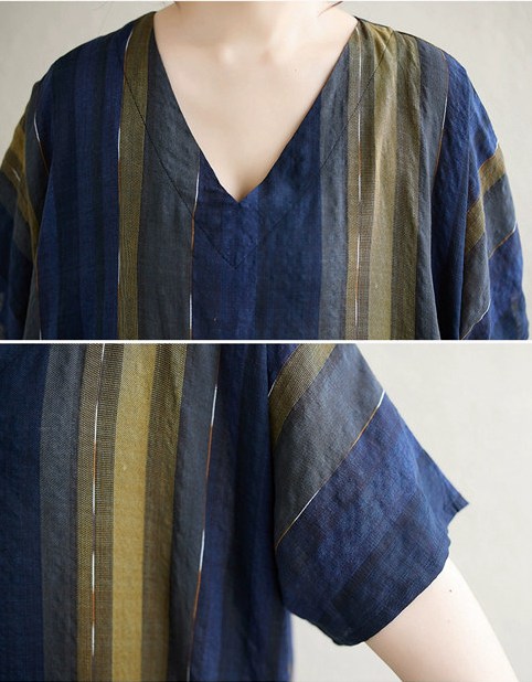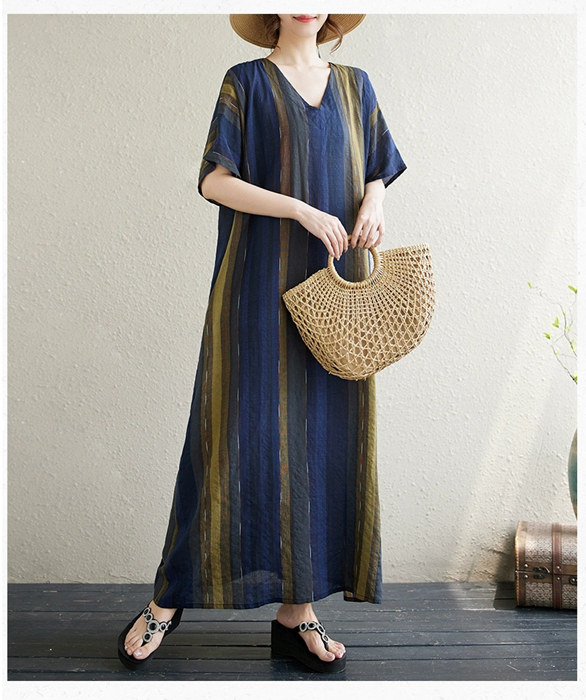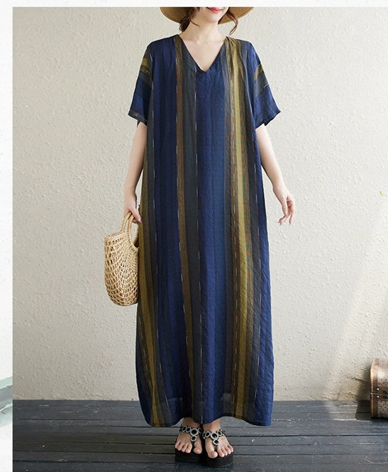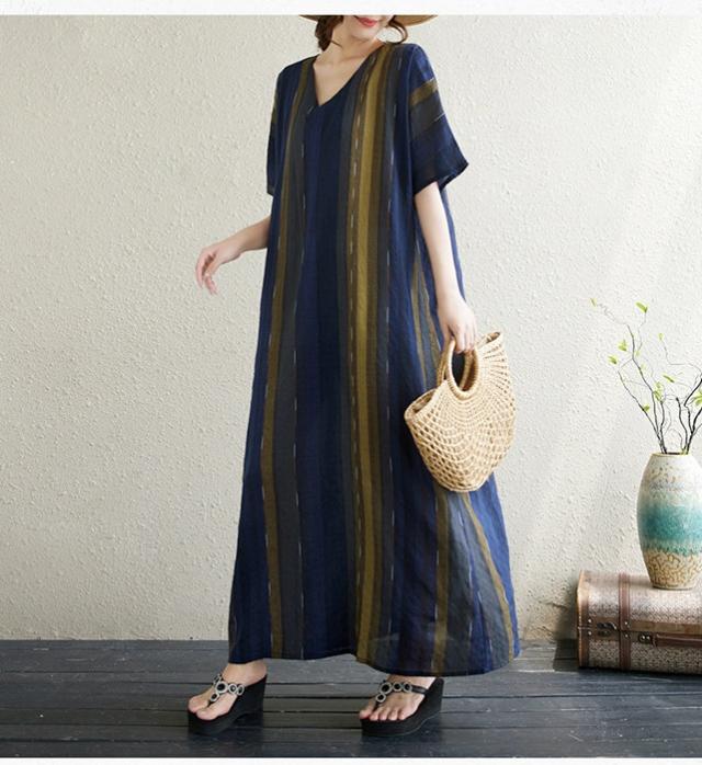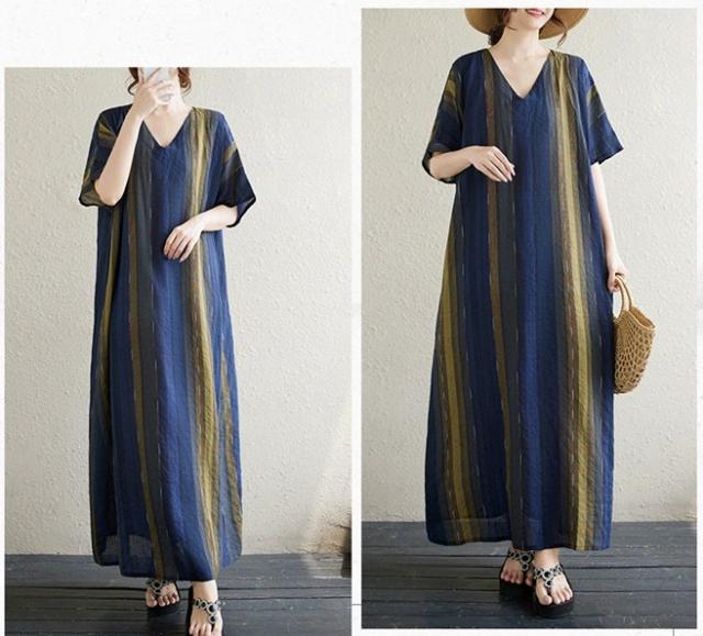 ワンピース シャツワンピース 半袖 Vネック 夏 大人 ロングワンピース レディース ストライプ柄 マキシ ロングシャツ Tシャツ カットソー 可愛い チュニック トップス きれいめ カジュ ブラウス