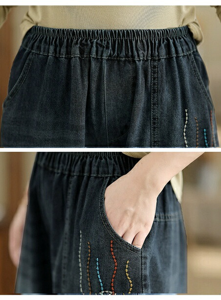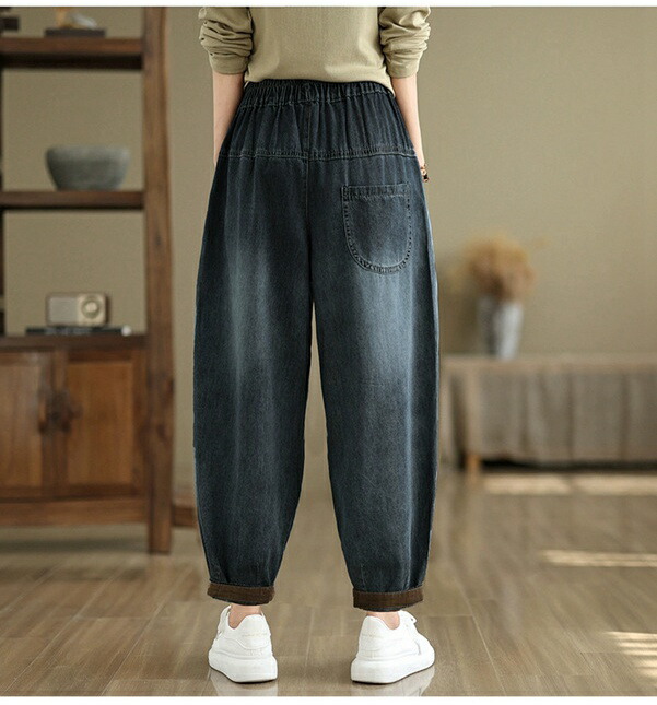 デニムパンツ ロング レディース 春秋 レディースファッション 44%Off M L XL 2XL ブラック ブルー