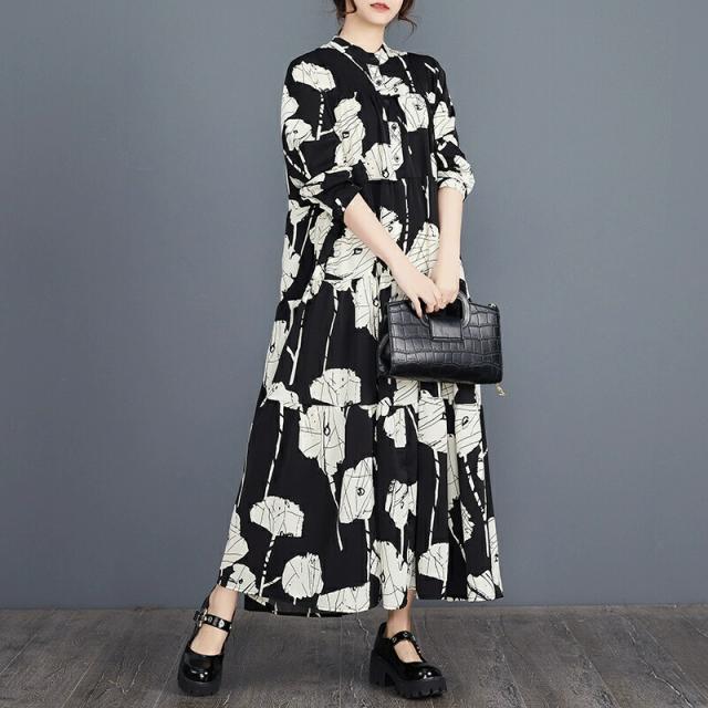 マキシワンピース ワンピース 長袖 春 シャツワンピース きれいめ ロングシャツ 花柄 大人可愛い チュニック レディース 秋 ブラウス トップス ロングシーズン カジュアル 大きいサイズ オ 着回し
