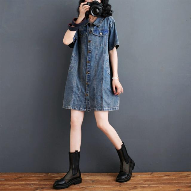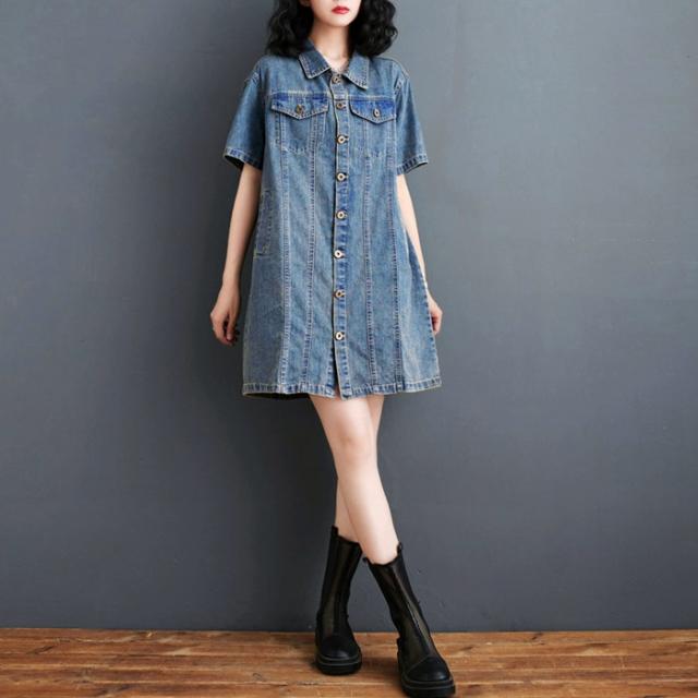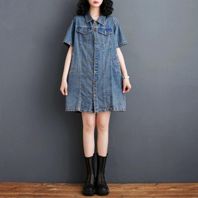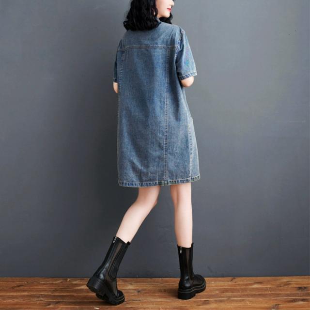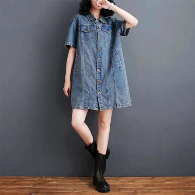 デニム チュニック ロングシャツ ワンピース 夏 レディース シャツワンピース ミニ丈 ショート丈 半袖 切替えワンピース 秋 きれいめ プルオーバー ロングワンピ チェックスカート バ 大きいサイズ