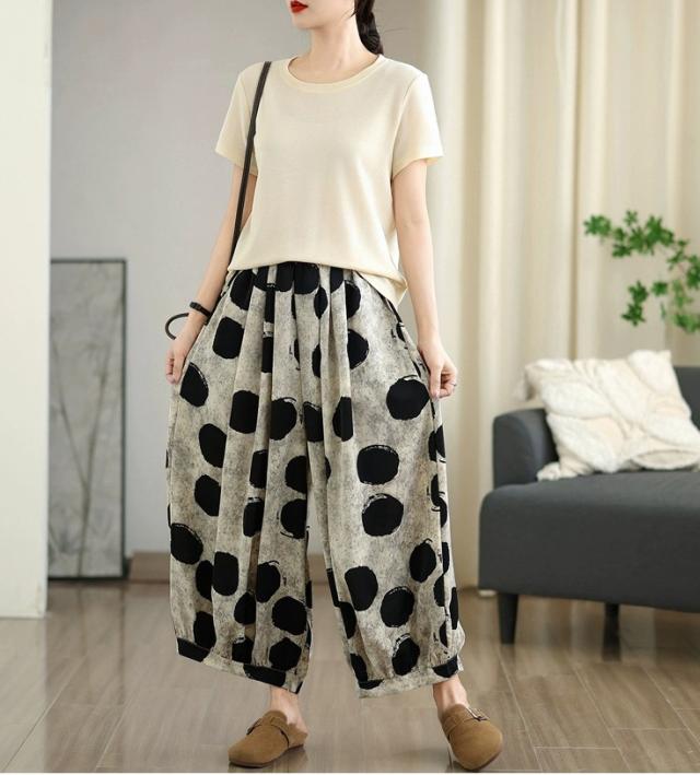 パンツ ワイドパンツ バルーンパンツ コクーンパンツ ドット ロング レディース 春夏 きれいめ 下着 ガウチョパンツ スカーチョ バギーパンツ テーパードパンツ ウエストゴム ボトムス 大きいサイズ