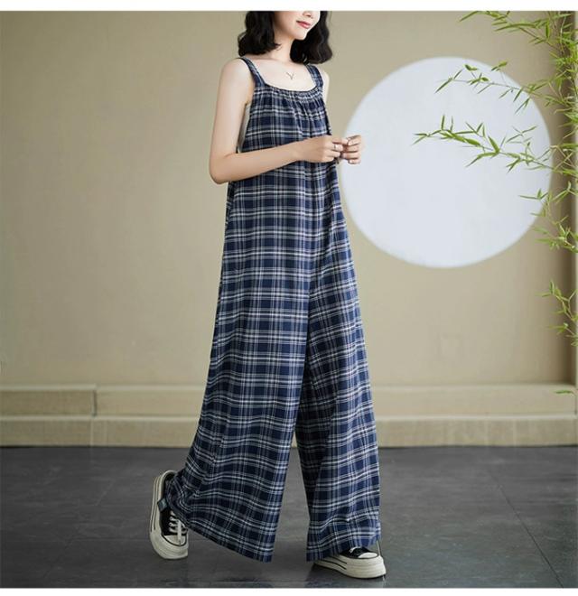 チェック サロペット オーバーオール オールインワン レディース 夏 春ロンパース 体型カバー 大きいサイズ ボトムス パンツ 作業服 ジャンパースカー カジュアル サルエルパンツ フレアー キャミ