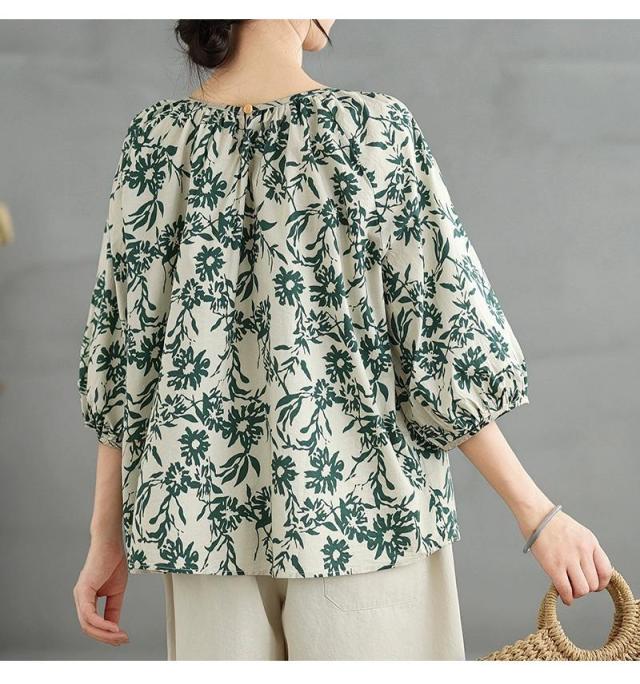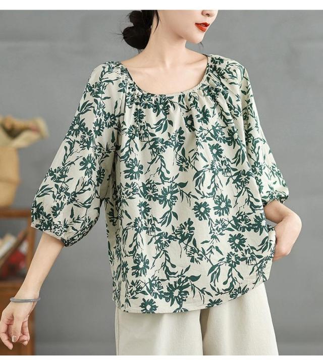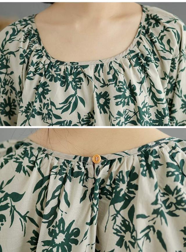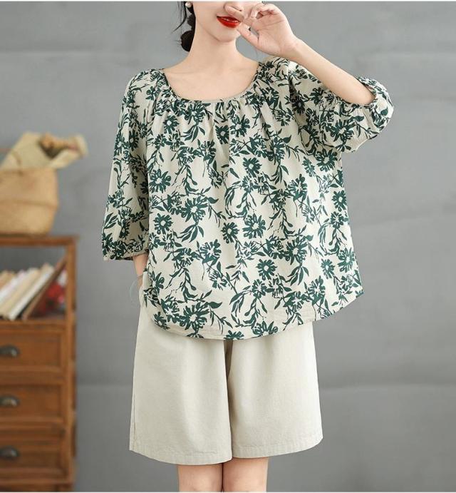 ブラウス 半袖シャツ 大人可愛い 夏 プルオーバー オーバーサイズ トップス レディース シャツ 薄手 チュニック 花柄 きれいめ 切り替え ミドル tシャツ カットソー 洗 ドロップショルダーシャツ