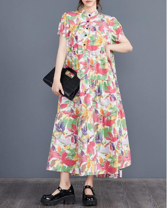 マキシ シャツワンピース 半袖 大人可愛い 春夏 ワンピース ロングワンピース レディース 切替え ロングシャツ Tシャツ カットソー チュニック ブラウス トップス カジュアル 花柄 大き きれいめ