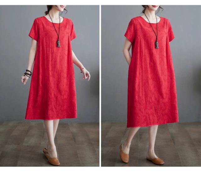 ロング チュニック 夏 半袖 ワンピ ワンピース 続々登場 ホワイト オレンジ レット M L XL 2XL