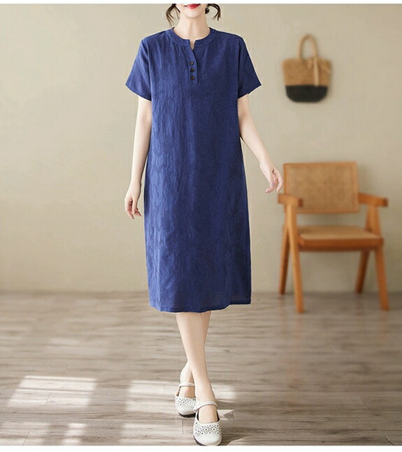 ワンピース 夏 チュニック ロングワン ワンピース 続々登場 ブルー ネイビー M L XL 2XL