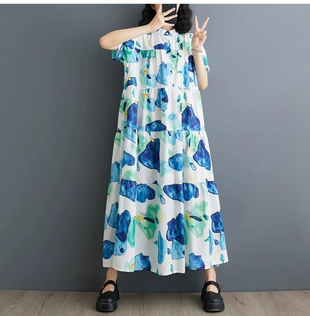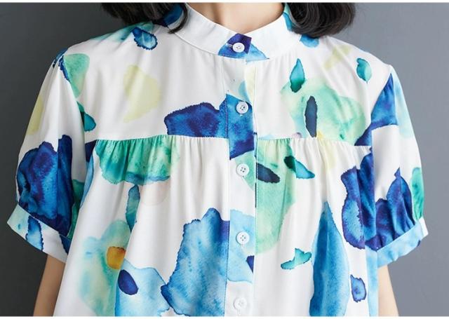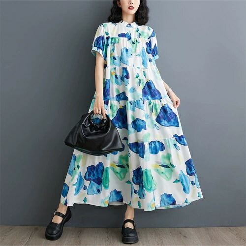 半袖 シャツワンピース ロングワンピース ワンピ 大人可愛い きれいめ 夏 レディース チュニック オーバーサイズ ロングシャツ スカート シャツ カットソー ブラウス 花柄 薄手 大きいサ トップス