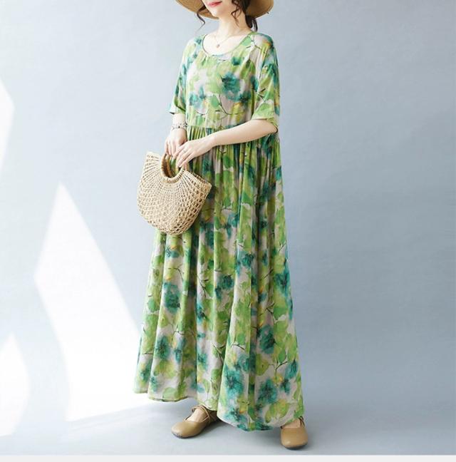 シャツワンピース ワンピース 半袖 夏 ロングワンピース チュニック きれいめ カジュアル 花柄 ロング チュニックワンピース 大人可愛い 大きいサイズ レディース 体型カバー 上品 大人 春 着痩せ