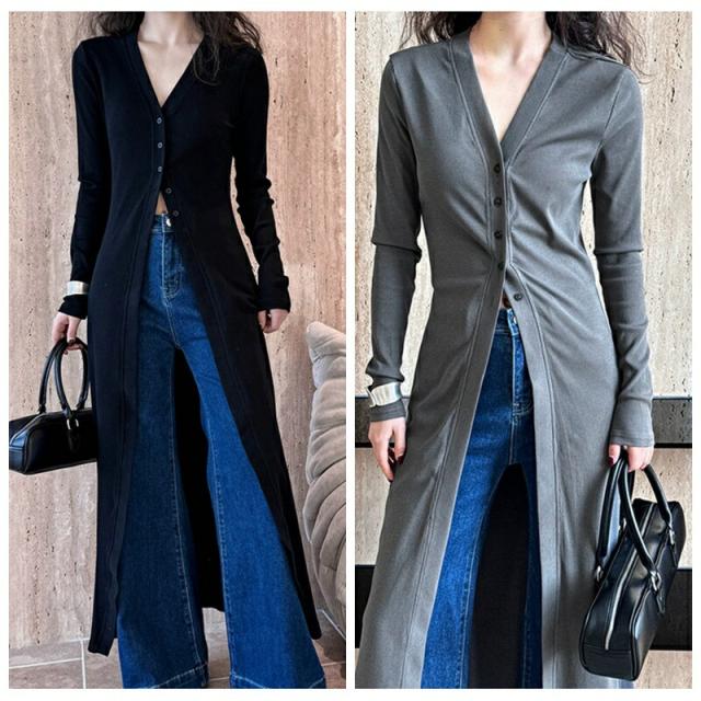 ニットワンピース カーディガン 長袖 レディースファッション 続々登場 M L グレー ブラック