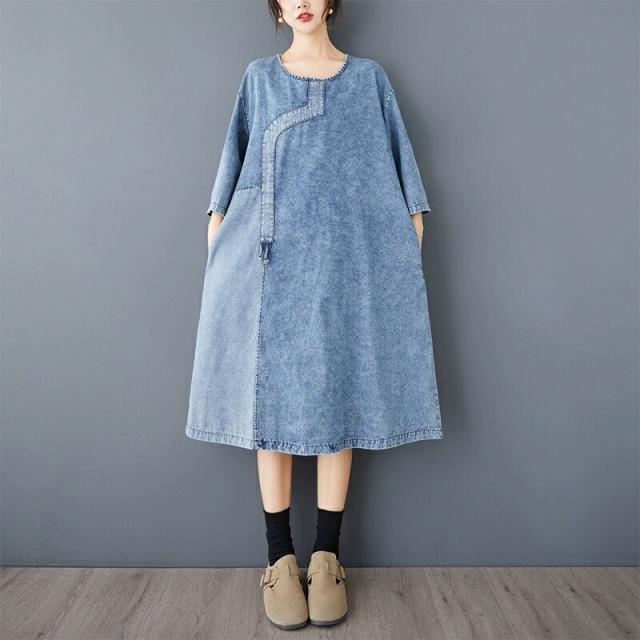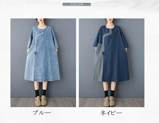 デニム シャツワンピース 春秋 ワンピ ワンピース 割引 ブルー ネイビー L XL 2XL